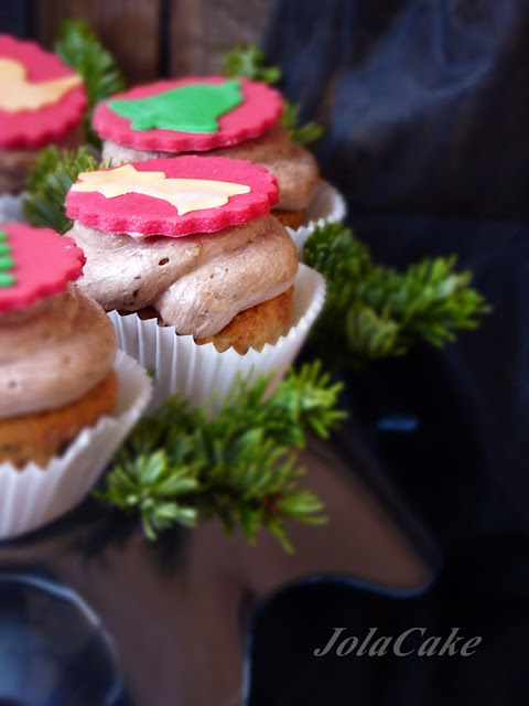 Nawet zwykły bananowy cupcake może być piękny jeśli go ładnie ustroimy. Na święta koniecznie w czerwone dekoracje z masy cukrowej.